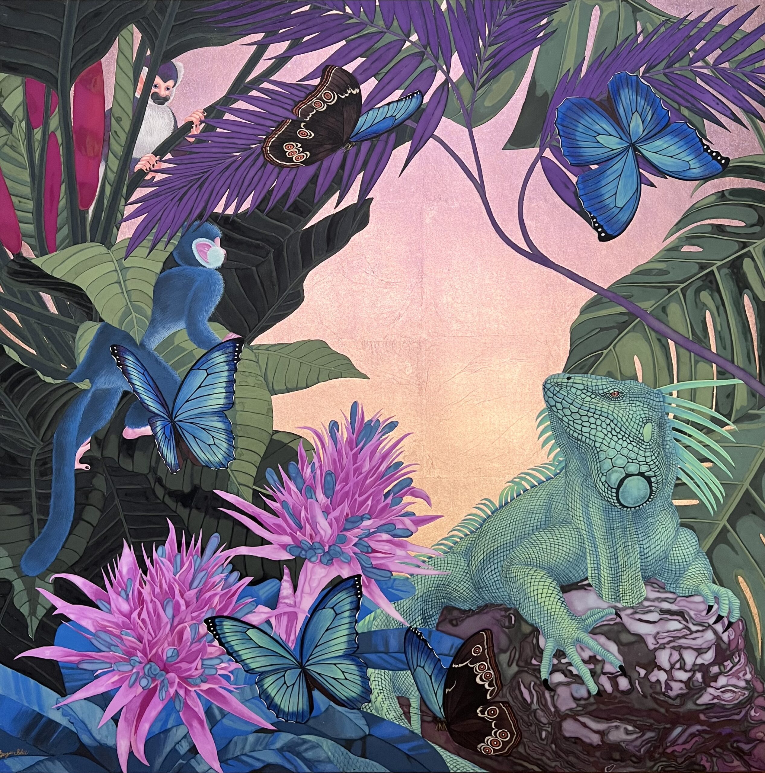 制作材料:雲肌麻紙 岩絵の具 銅箔 金泥 銅粉 パールパウダー